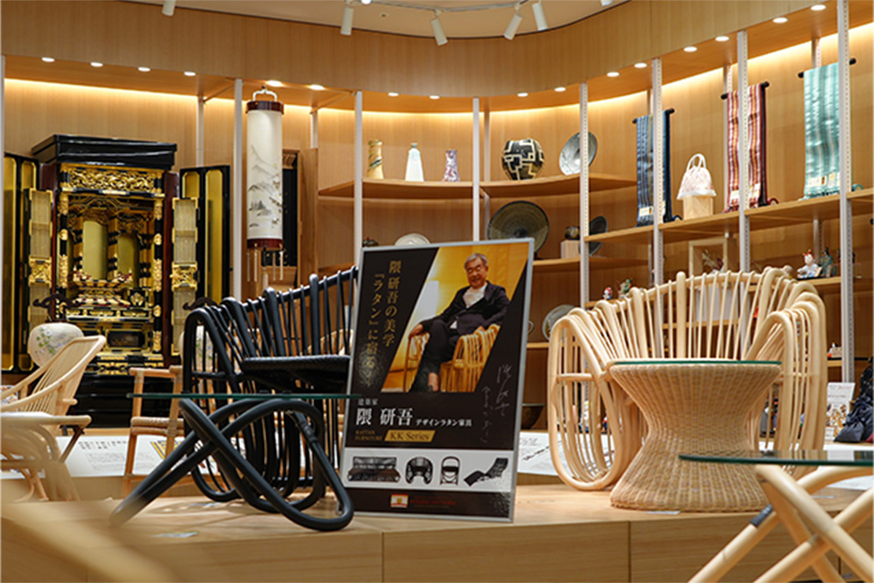 世界的建築家・隈研吾氏が手がけるラタン家具『KKシリーズ』をはじめ、天然素材の魅力と日本の伝統美を融合した製品を展示・販売いたします。