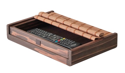 鹿田産業が手掛けたリモコンボックスは、杉材に伝統の「竹すだれ生地」を組み合わせたもの。テレビやエアコンのリモコンなど、生活感が出がちなアイテムを、美しく隠して整えるための特別な収納箱です。