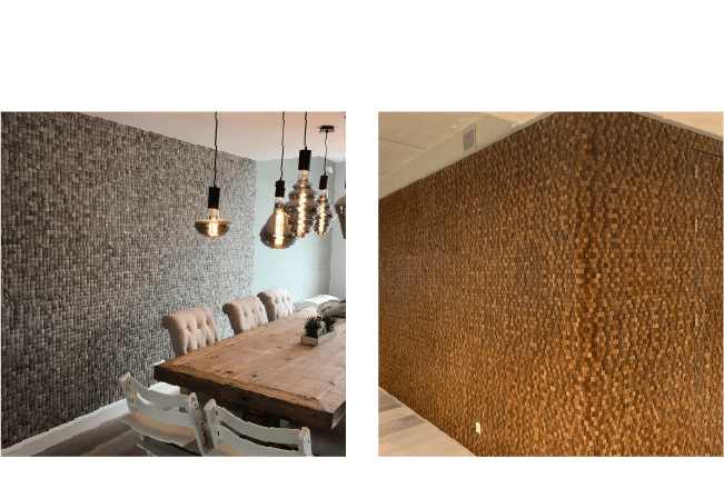 ※写真は海外での参考例です。防火材料として壁面へ直接貼る施工はできません。